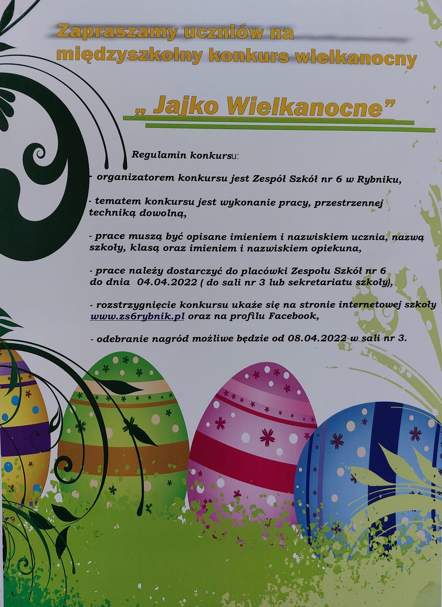 Zapraszamy do udziału w międzyszkolnym konkursie wielkanocnym. Szczegóły na plakacie.
